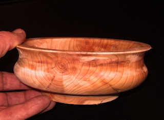 Mein Sohn hat mir jede Menge Eibenholzstämme mitgebracht. Nachdem ich nun die Bandsäge habe, kann ich endlich die Stämme auch verarbeiten. Hier habe ich mal einen kleine Schale gemacht. Es ist noch ein Rohling. Da das Holz doch noch sehr nass ist und ich befürchte dass es beim Trocknen reist. Wenn es dann trocken ist werde ich es fertig bearbeiten.