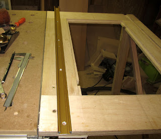 Dieter Schmid hat schon seit einiger Zeit die Incra-Tools im Programm und ich hab mir mal das INCRA Build-It Starterset zugelegt. Für die Führungsschiene muss ich mir eine Nut in den Arbeitstisch fräsen.