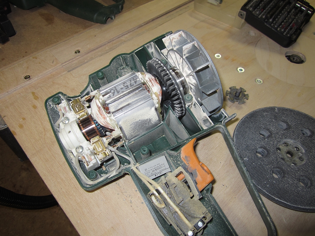 Ausgerechnet jetzt geht mir der Exzenterschleifer kaputt. Die Halteschraube des Schleiftellers ist abgerissen.